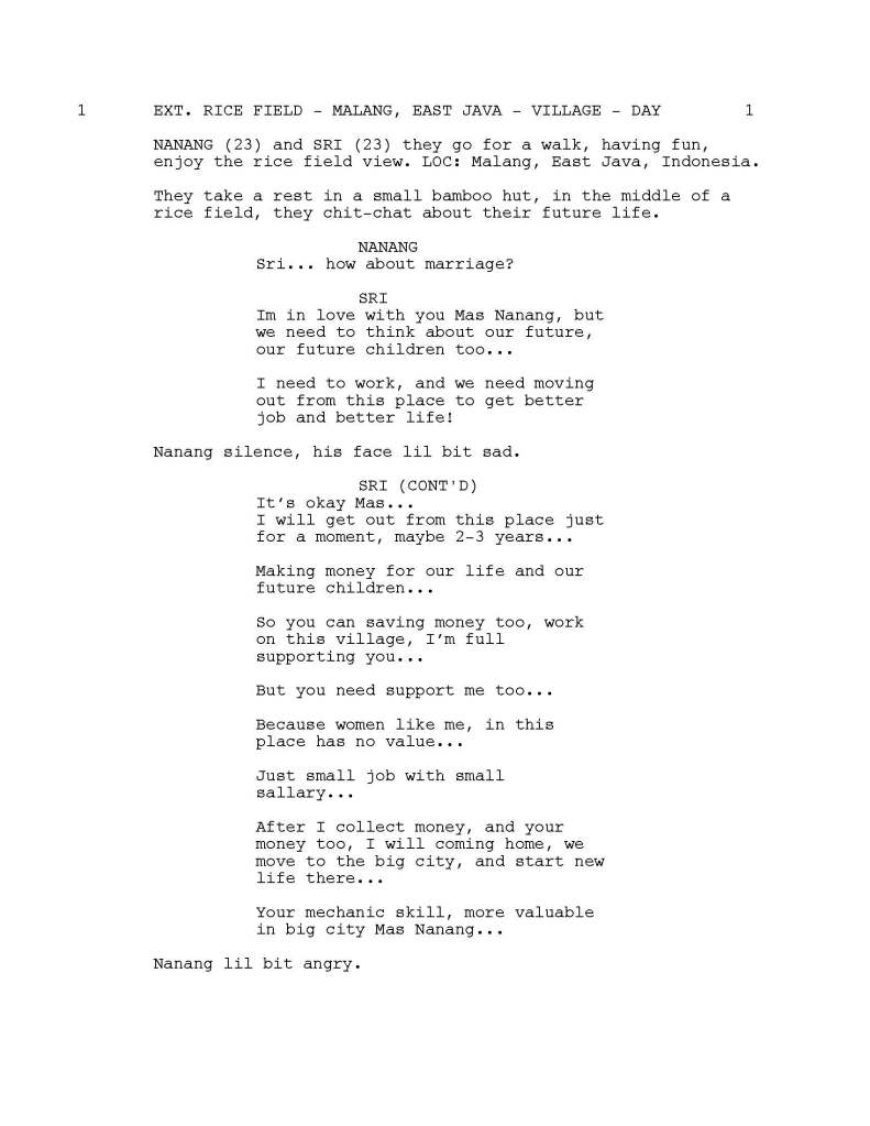 (3) Logline: An everyday mechanic from a small Indonesian village embarks on a challenging journey to Incheon, Korea, seeking his long-lost love and confronting unexpected realities.