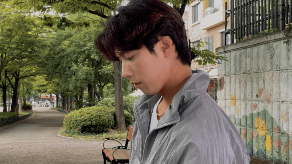 Since we filmed with a smartphone, the limited lenses made it difficult to achieve a good depth of field, which was a bit disappointing. However, I was very satisfied with the vertical shot of Saeah walking down the street at dawn. The sky’s color and her expression blended well to create a unique atmosphere. The background music was also fitting. Given the mixed genre of comedy, romance, and thriller, I made sure that the editing brought out each element effectively.