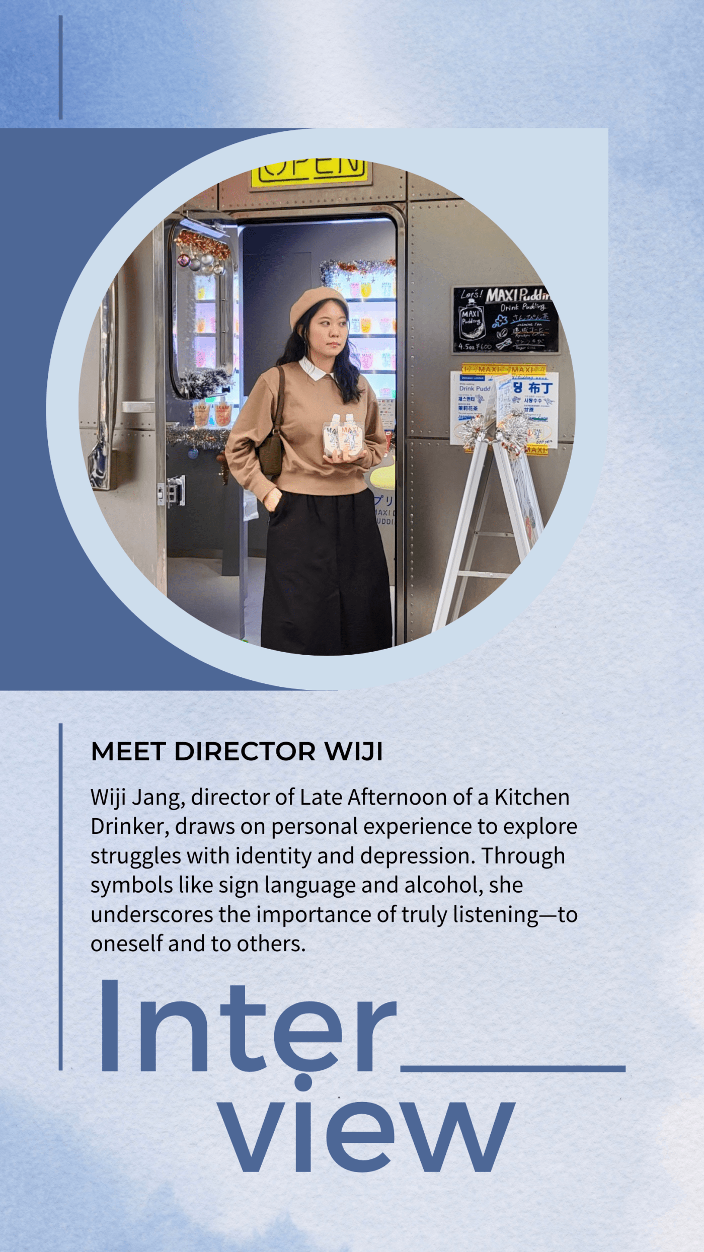 In Late Afternoon of a Kitchen Drinker, director Wiji Jang presents a delicate yet profound journey into the unspoken struggles of identity, motherhood, and quiet despair. Drawing on her own experiences, Jang crafts a world where sign language, water, and alcohol become subtle metaphors for self-reflection, loss, and healing. In an exclusive interview, she reveals the personal inspirations behind her film, her intentional choices in tone and symbolism, and the message she hopes resonates with anyone who has ever felt adrift in the everyday rhythms of life.