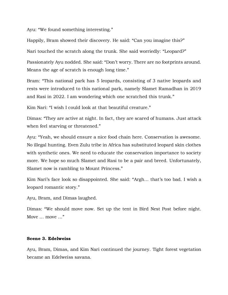 (3) Logline: Kim Nari got her soulmate because of the magic of Edelweiss. As a forest researcher, she collaborated with Indonesian researchers in Ciremai National Park. There, Dimas fell in love with her and asked her to grow Edelweiss seeds for 10 years. That will prove the eternal love between them.