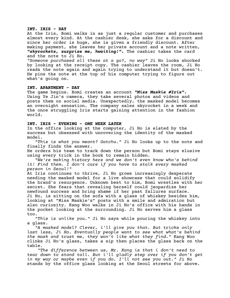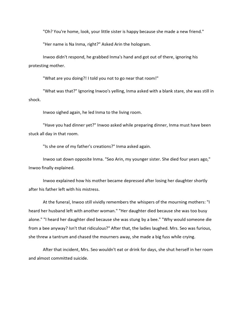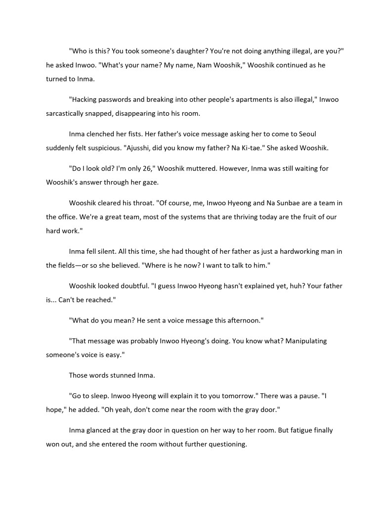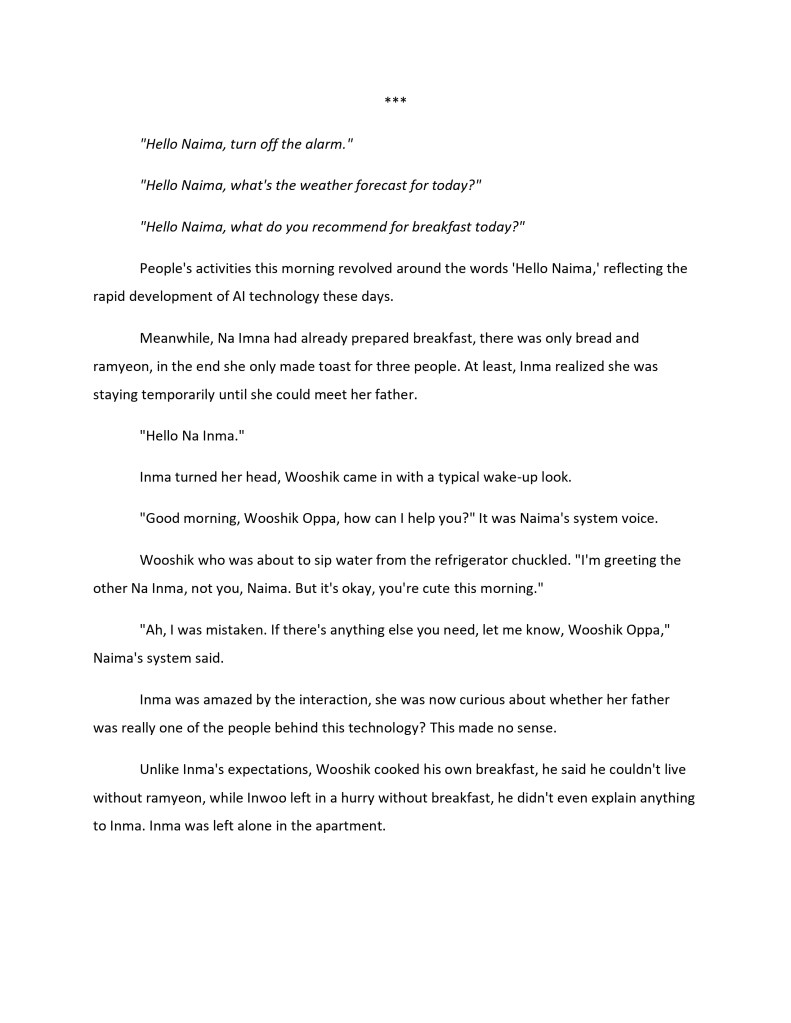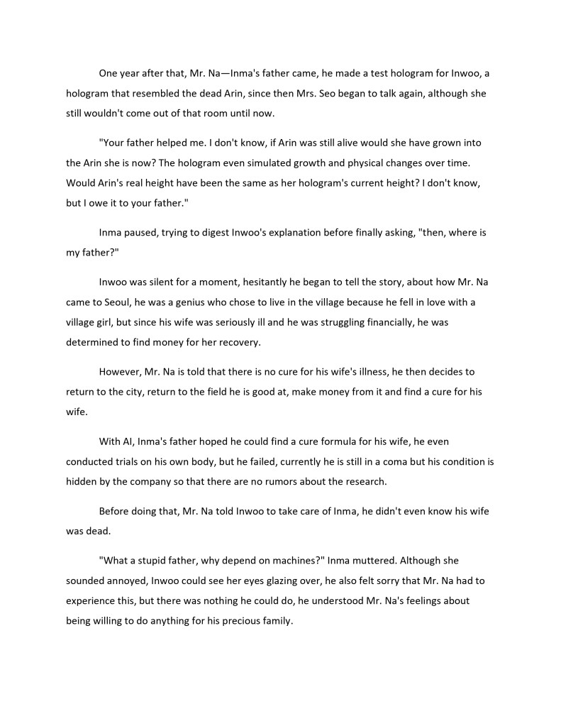(3) Logline: Na Inma, searching for her father, who vanished three years ago, uncovers the shocking truth: he is the genius behind groundbreaking AI, forcing her to rethink everything she believed about him—and herself.