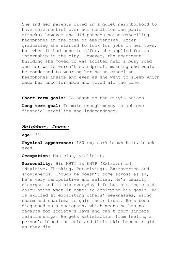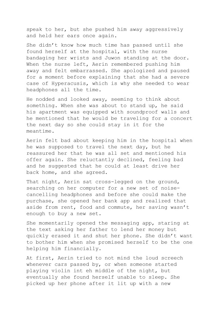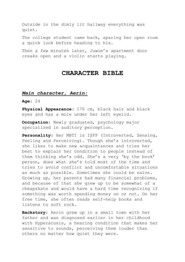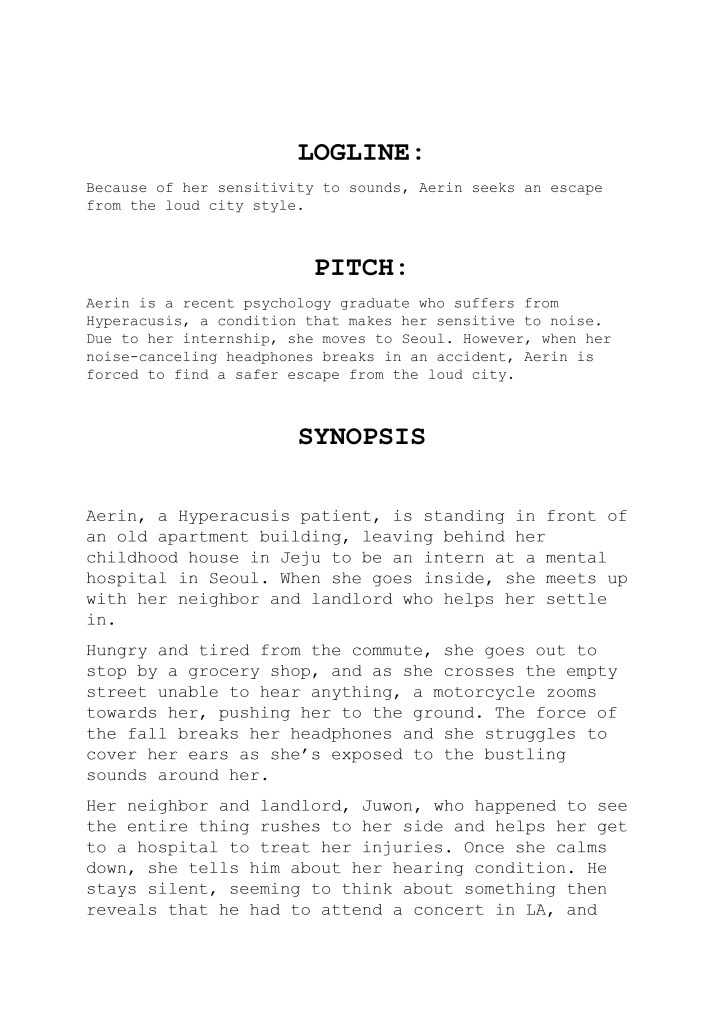 (3) Logline: Aerin is a recent psychology graduate who suffers from Hyperacusis, a condition that makes her sensitive to noise. Due to her internship, she moved to New York. However, when her noise-canceling headphones break in an accident, Aerin is forced to find a safer escape from the loud city.