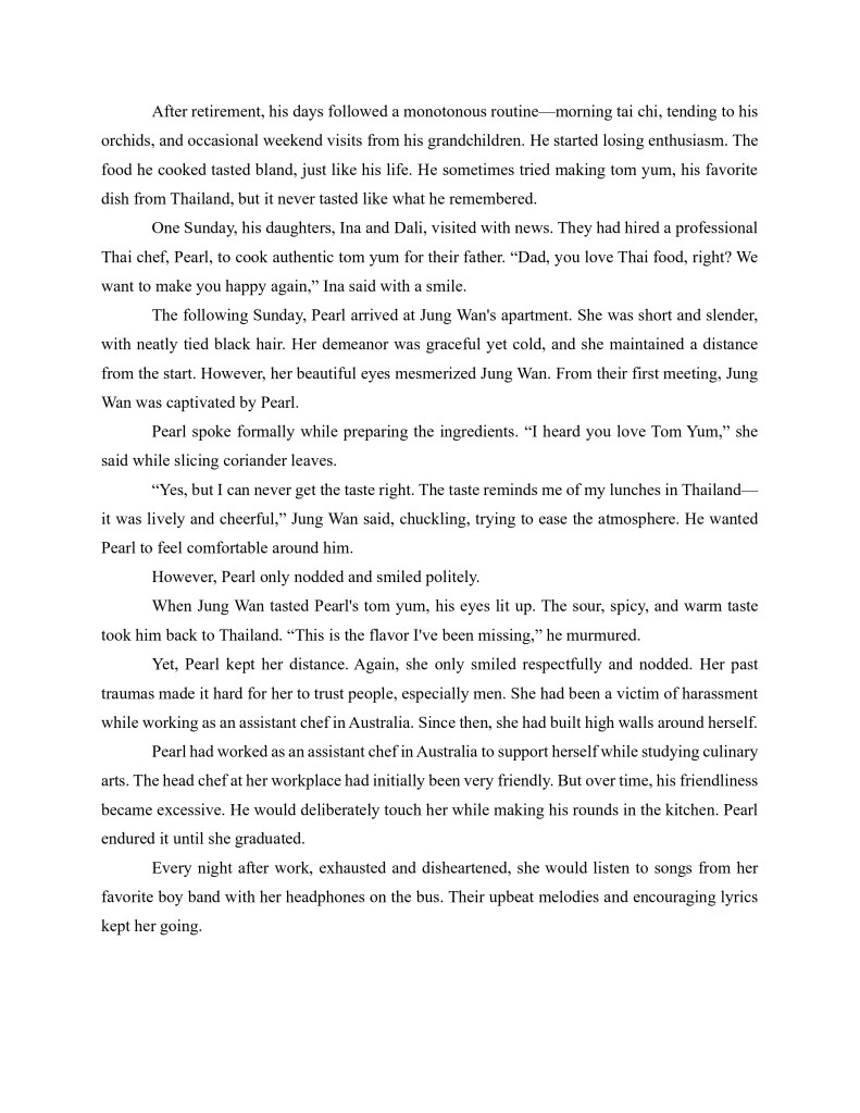 (3) Logline: A lonely retired botanist and a guarded young chef form an unlikely connection over cooking lessons, but as their bond deepens, they must confront the boundaries of love, family, and the longing for warmth that neither can fully name.