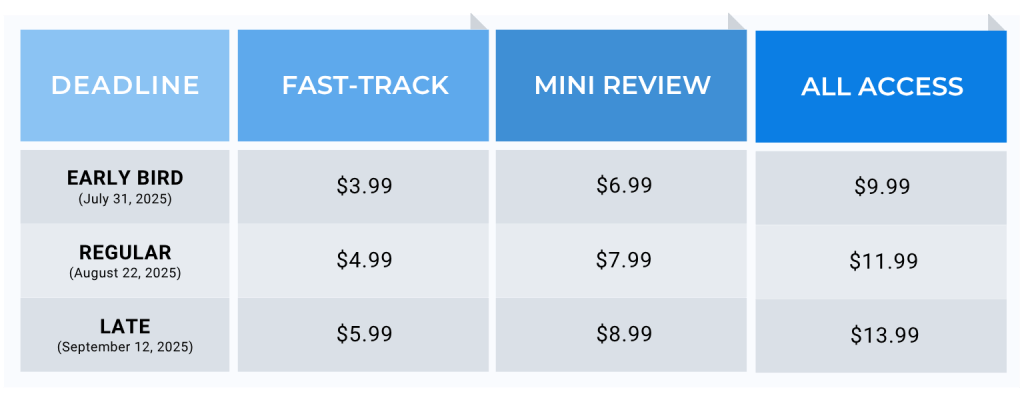 - Mini Review (6.99 USD~): You receive 300 words of feedback with suggestions for improvement. (The verdict will be announced on the public finalist announcement day.)