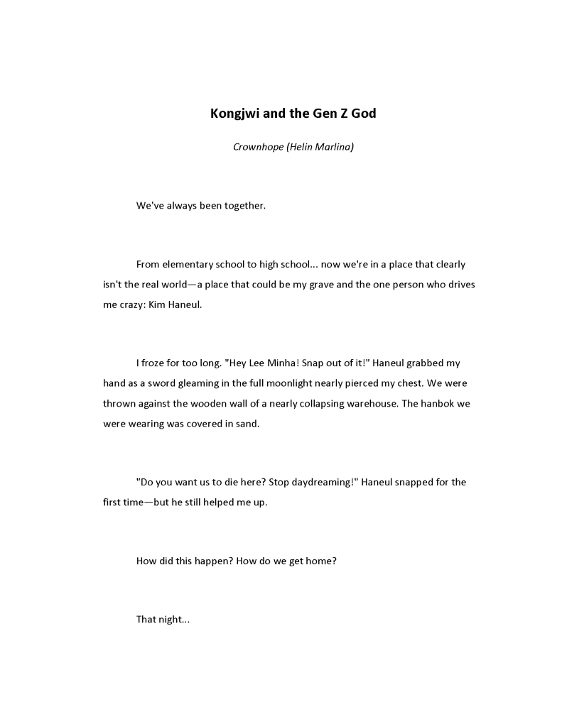 In the space where Korean folktales meet Gen Z reality, writer Helin Marlina finds her voice with Kongjwi and the Gen Z God. What started as a wish to see Kongjwi and Patjwi through the eyes of today’s girls grew, over multiple contest entries, into a bold reimagining that questions gender roles, family expectations, and who gets to be “good” in a story. Writing as “crownhope,” she folds her own experience with rejection and perseverance into the script, blending sharp humor with quiet emotional blows and giving her Kongjwi a need not just to be kind, but to be seen. In our conversation, Helin talks about the long road to this winning piece, how Gen Z language and online culture slipped into a Joseon village, and why rewriting old tales can open new space for readers who never saw themselves at the center.